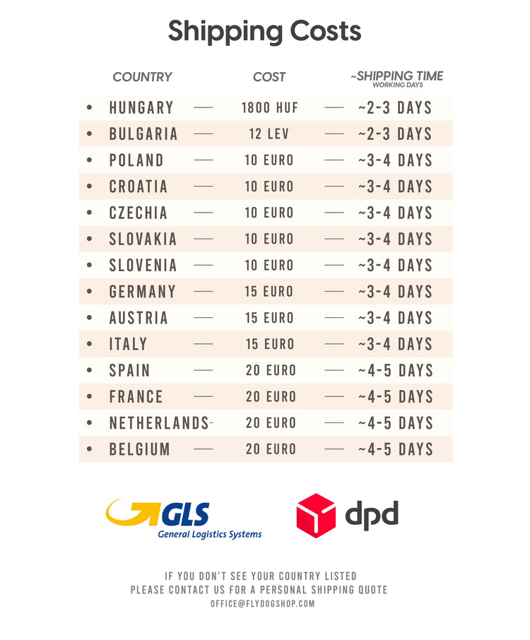 La Flydog ne străduim să trimitem cât mai repede coletul tău. Dacă ai comandat un produs unic, personalizată atunci timpul de execuție poate să varieze între 1-4 zile + durata livrării 24-48 ore.
