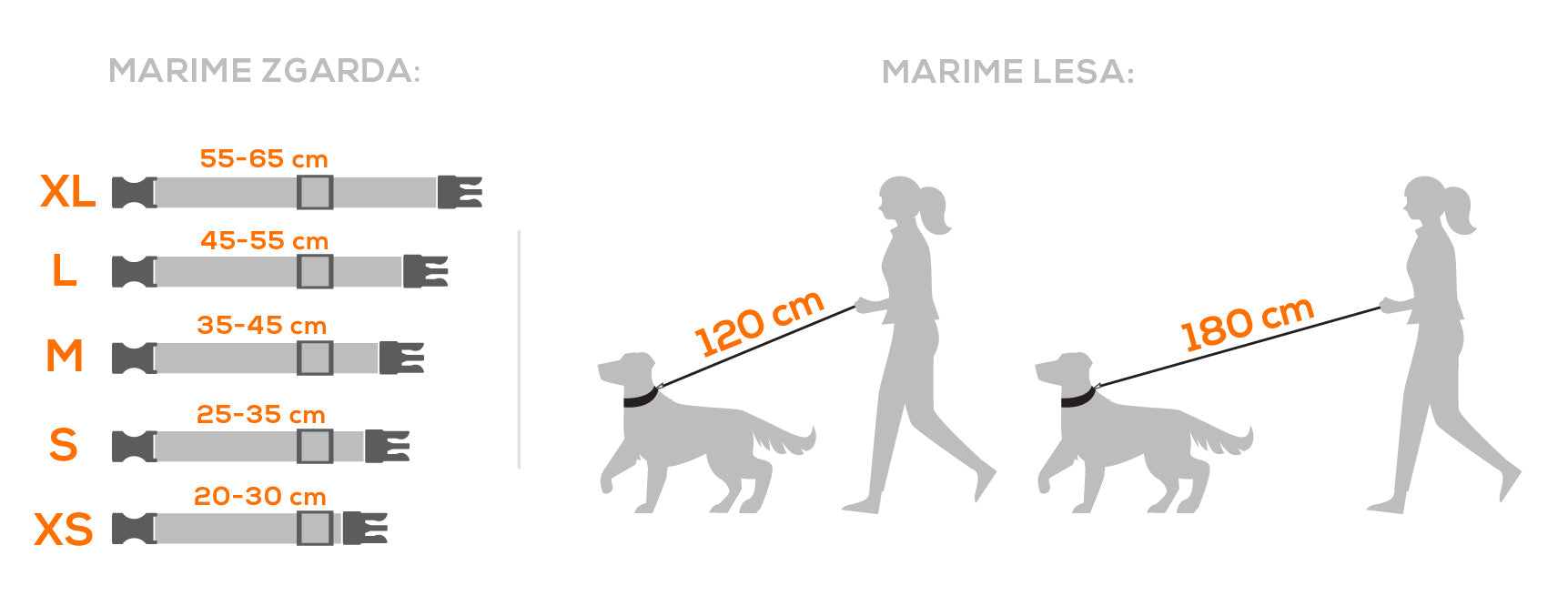 Baza zgârzii și a lesei sunt alcătuite dintr-un material rezistent 100% polipropilenă, partea superioară a acesteia fiind acoperită cu o țesătură densă colorată, hidrofugă, și cusută cu ață rezistentă la rupere. Cataramele sunt din plastic dur (acetal), care în funcție de mărimea zgărzii, pot avea o limită de rupere de 100-350 kg.
